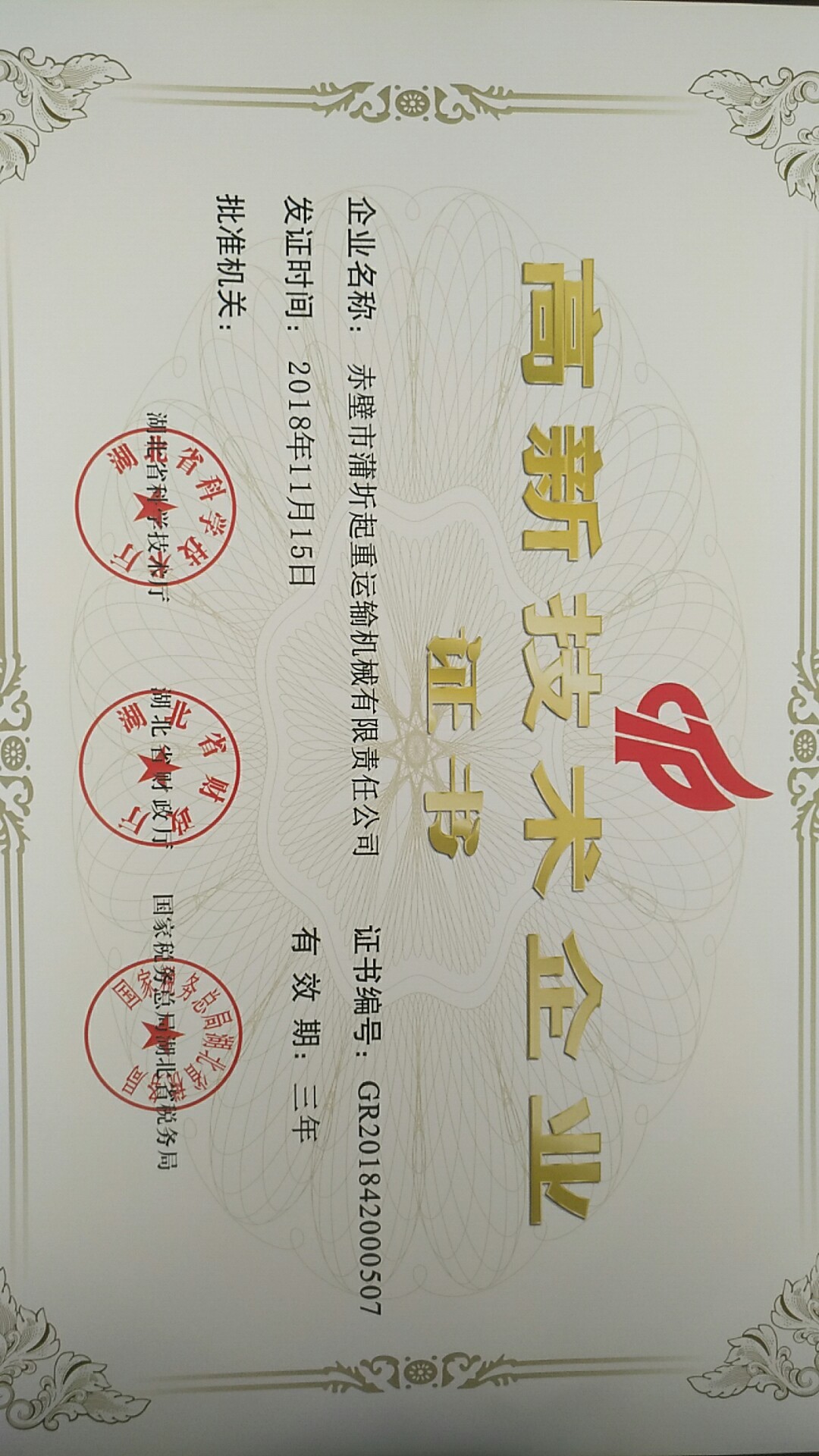 高新技術(shù)企業(yè)證書